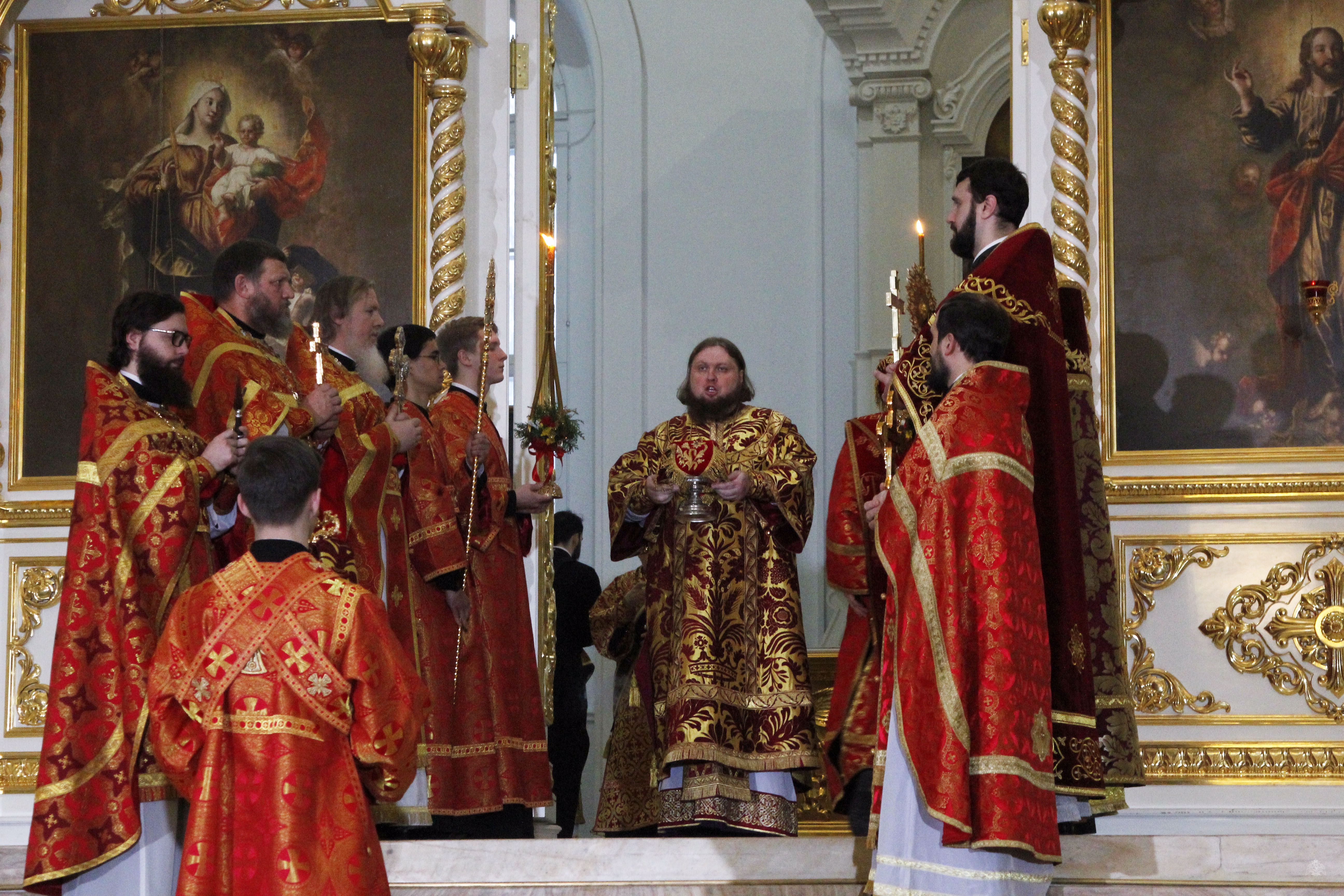 Божественную Литургию в праздничный день возглавил ректор СПбДА епископ Петергофский Силуан, в сослужении благочинного храмов при вузах Санкт-Петербурга протоиерея Петра Мухина,