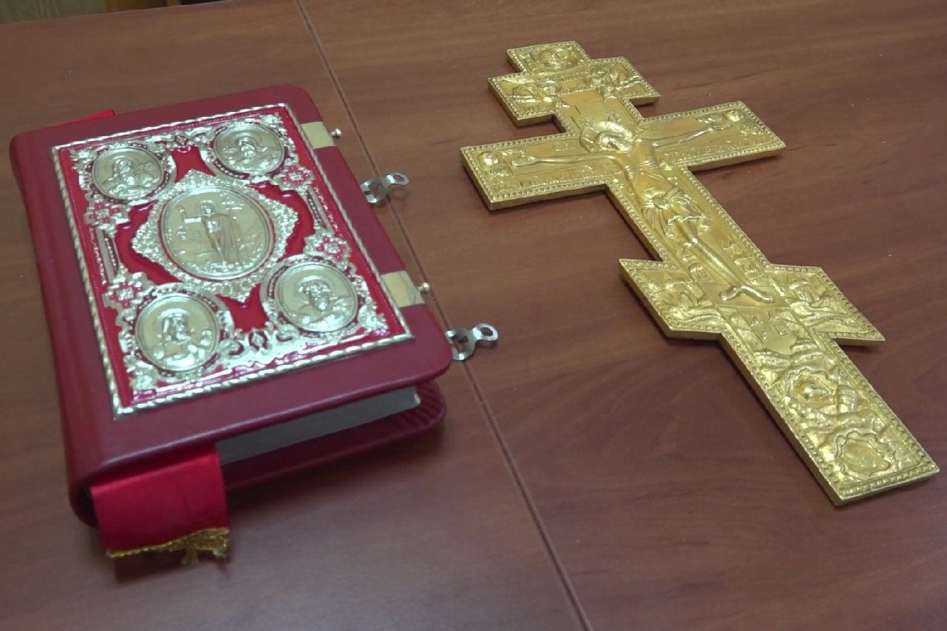 Похищенные из храма Евангелие и крест стоимостью 400 тысяч рублей при себе он не оставил. Полицейские изъяли реликвии из ломбарда. По данным ведомства, подозреваемый получил за них 500 рублей.