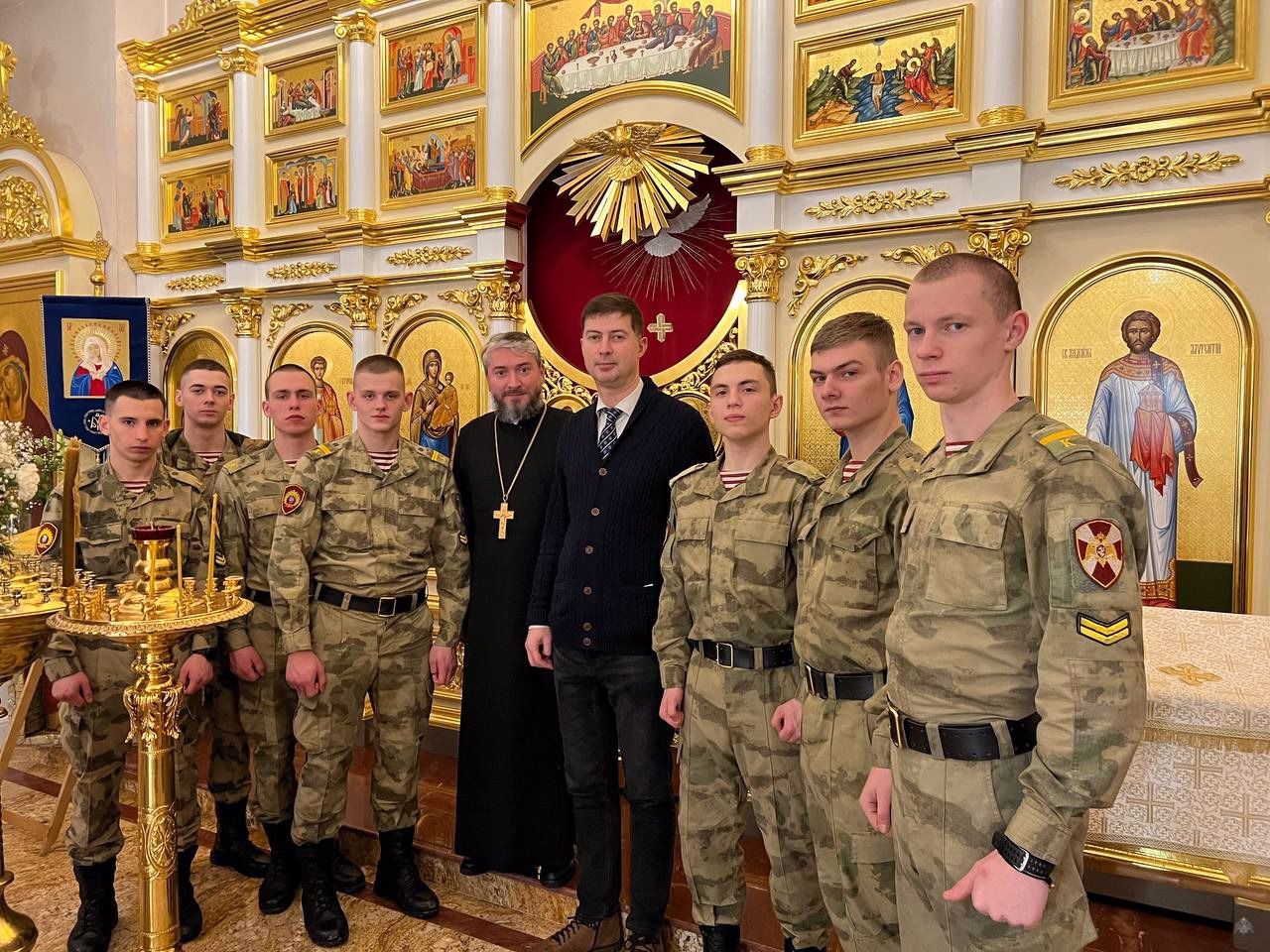 За богослужением молились курсанты 4-й роты факультета (командного) и почти все причастились Святых Даров.