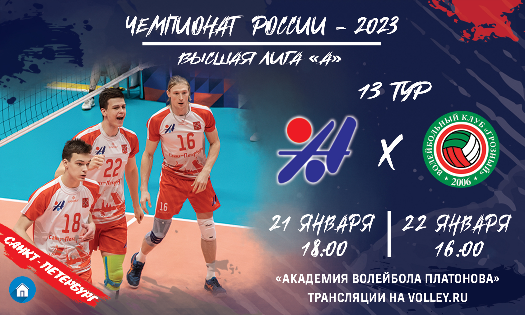 13 тур Высшей лиги «А» проводим в «Академии волейбола Платонова». Принимаем гостей из Грозного- ВК «Грозный».