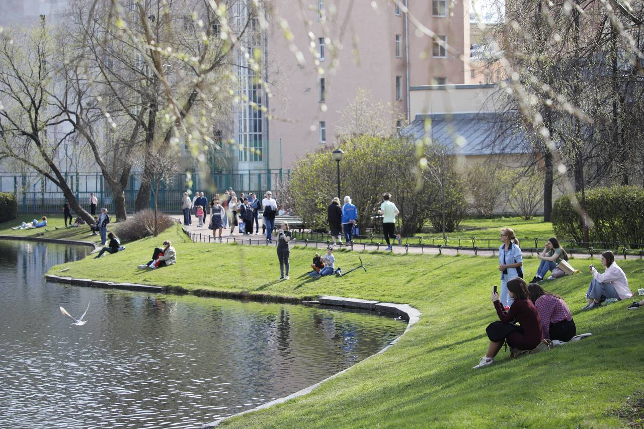 Температура воздуха сегодня приближалась к +22 градусам. Но горожане, как всегда, разделились — одни выбрались на прогулку в шортах и легких рубашках, другие — все еще предпочитают оставаться в куртках. Люди заполонили парки, набережные, центр города, да и просто любые зеленые зоны. Многие наслаждаются видами Северной столицы с речных трамвайчиков.