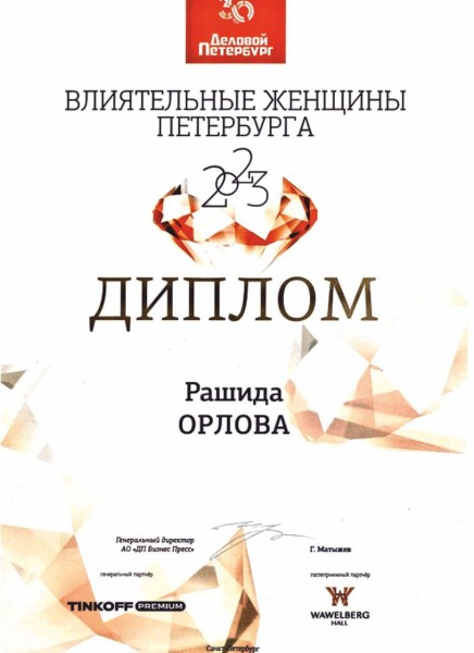 Лауреатом премии «Влиятельные женщины Петербурга — 2023» стала Рашида Орлова