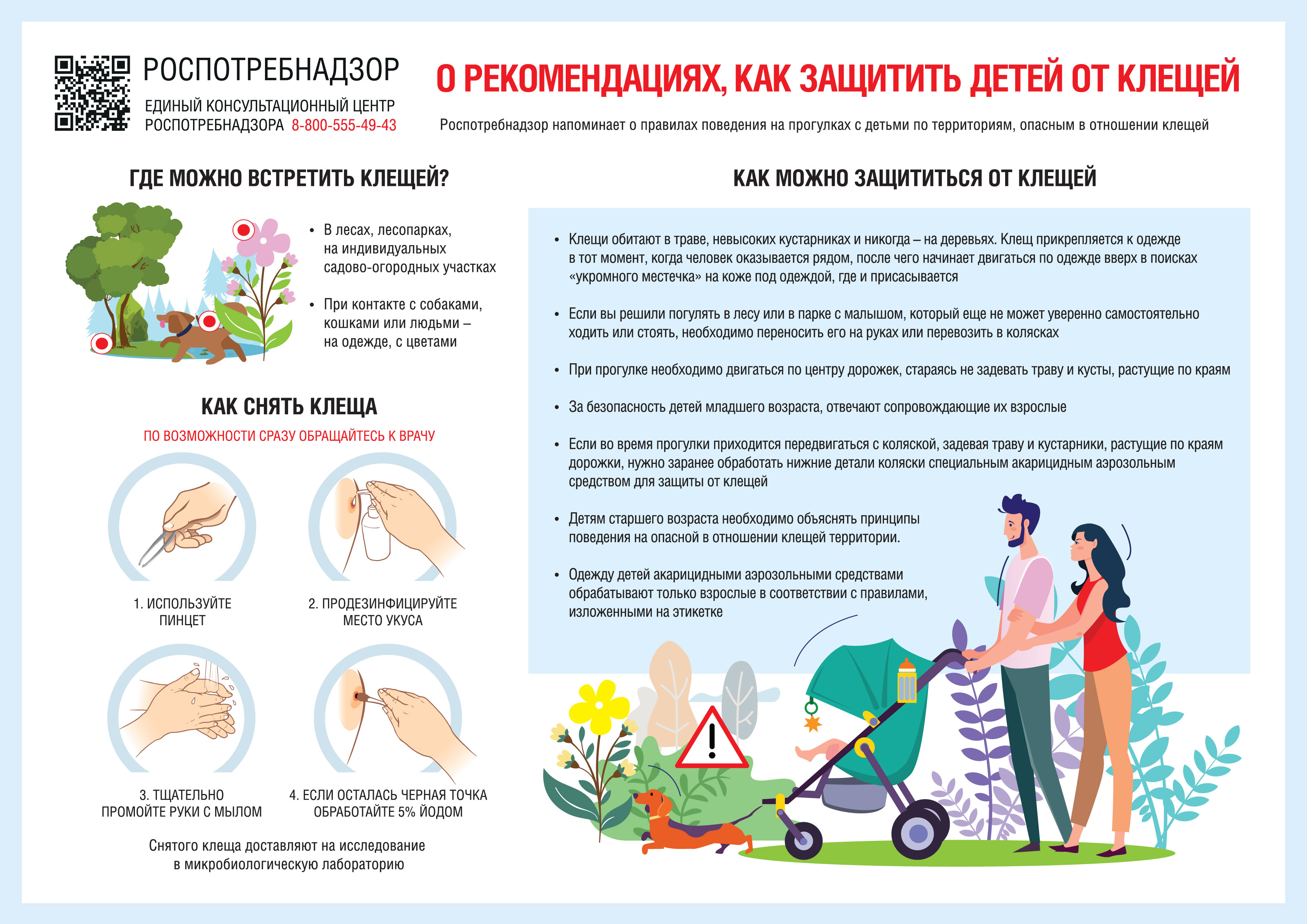 Управление Роспотребнадзора по городу Санкт-Петербургу напоминает о правилах поведения на прогулках с детьми по территориям, опасным в отношении клещей.