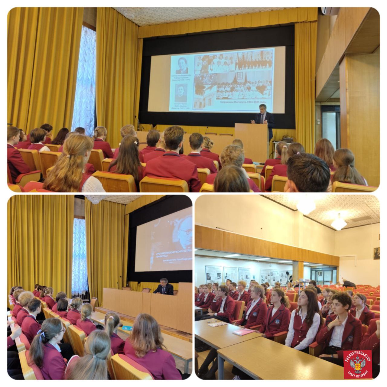 28 сентября 2023 г. в конференц-зале НИИ "Санкт-Петербургский научно-исследовательский институт эпидемиологии и микробиологии им. Пастера" директор Тотолян Арег Артёмович провёл для учащихся 10-го класса («Класс Роспотребнадзора») лицея № 214 Центрального района Санкт-Петербурга ознакомительное занятие, рассказав об истории Института и основных направлениях его деятельности.