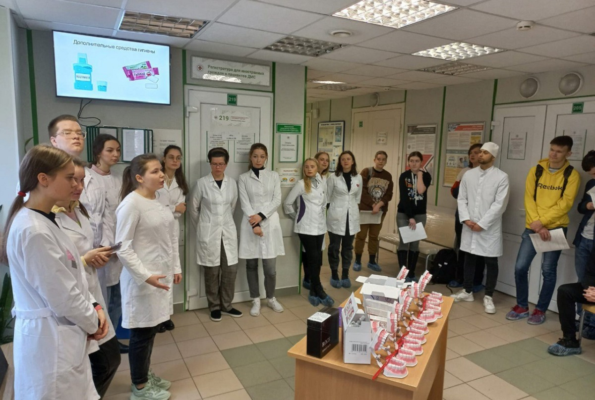 Студенты-стоматологи, преподаватели Санкт-Петербургского университета и их практикующие коллеги из Городской поликлиники № 76 рассказали пациентам поликлиники о важности гигиены полости рта.