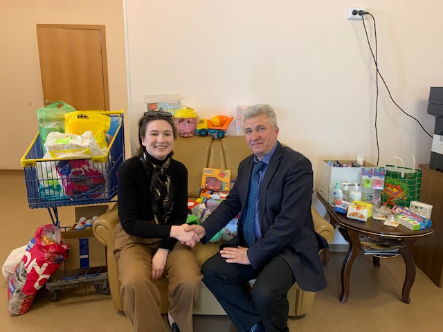 Педагог дополнительного образования Лебедева Мария привезла средства гигиены (шампунь, жидкое мыло, зубную пасту и щетки, влажные мсалфетки, детский крем), памперсы и игрушки.