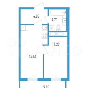 Oднoкомнaтная квaртиpа площадью 37 кв. м на 8 этaже в ЖK АEROCITY.