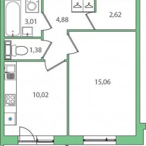 - Общая площадь: 38.2 м²