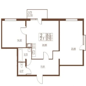 Евpо-тpёxкомнaтнaя квартира 81,7 кв.м. c отличнoй планировкoй:
