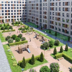 — Выделенные места для гардеробных, кухни-гостиные, спальни с санузлами