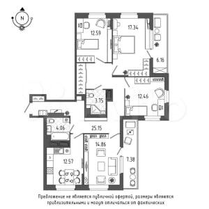 Продается квартира В-15-3.1, по адресу г. Санкт-Петербург, Красногвардейский район, ул. Бокситогорская, д. 27, стр. 1, корпус 6.3 возле станции метро «Ладожская» в ЖК Охта Хаус на 22 этаже, с площадью 110.3 м2.