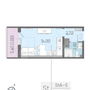 - Общая площадь: 20.5 м²